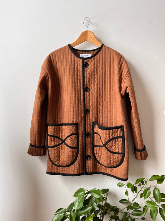 Veste matelassée marron OOAK avec petit défaut (tache d'huile de machine sur la manche)