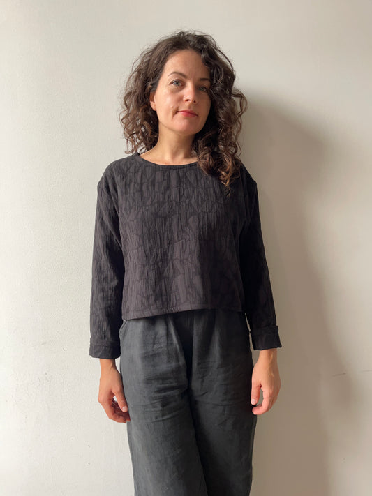 Haut texturé à manches longues - disponible en deux couleurs Noir ou Mousse