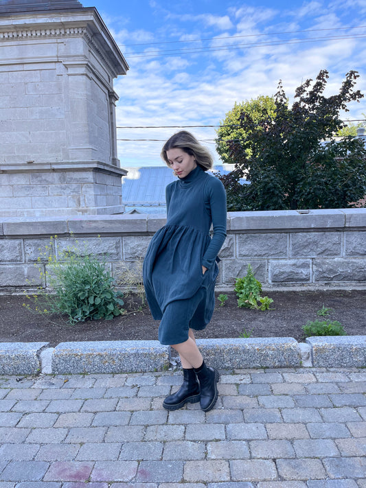 Robe Madeleine - Mélange lin / coton biologique - Lagune