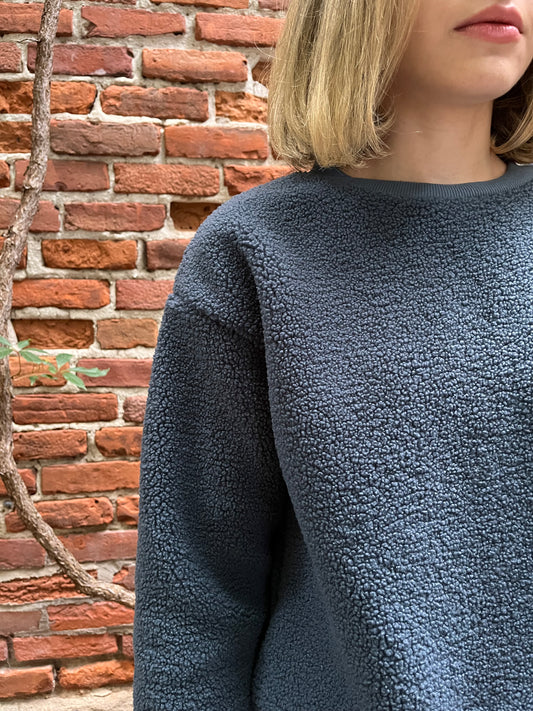 Sweat-shirt col rond sherpa extra épais - Bleu fumé