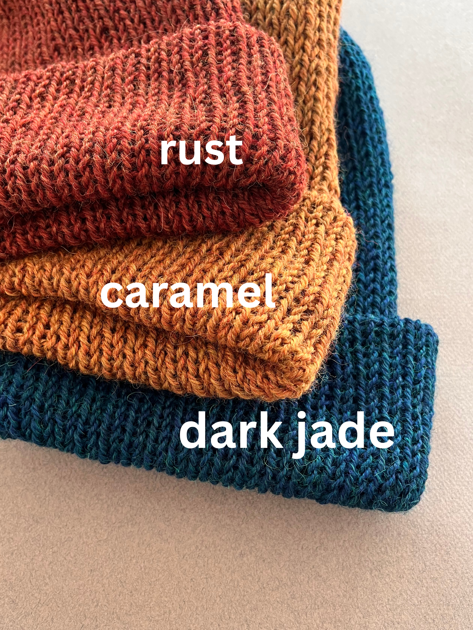 Tuque à double couche fabriqué sur ma nouvelle machine à tricoter circulaire ! Tellement amusant ! J'ai utilisé de la laine de haute qualité magnifique pour créer ces bonnets parfaits. Actuellement, ils sont disponibles en ces trois couleurs.