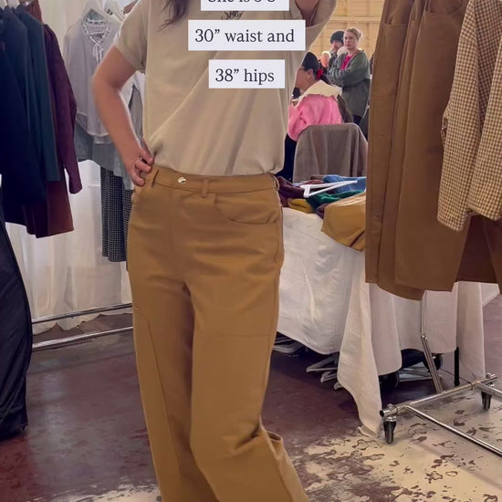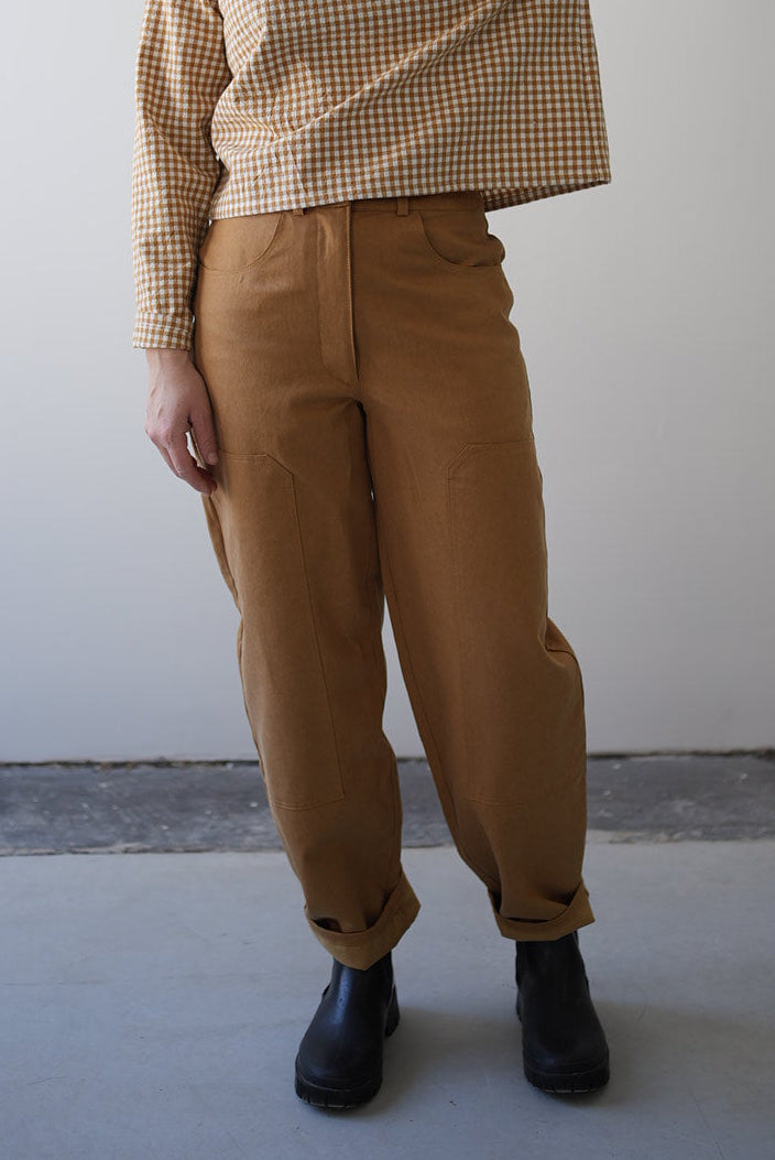 Voici un nouveau modèle que je présente cette année ! Ce magnifique pantalon à jambes barils est confectionné dans un beau tissu en mélange de coton et lyocell. Le pantalon est ajusté à la taille et aux hanches, puis ample au niveau des cuisses et du reste de la jambe. Le pantalon a une taille haute.