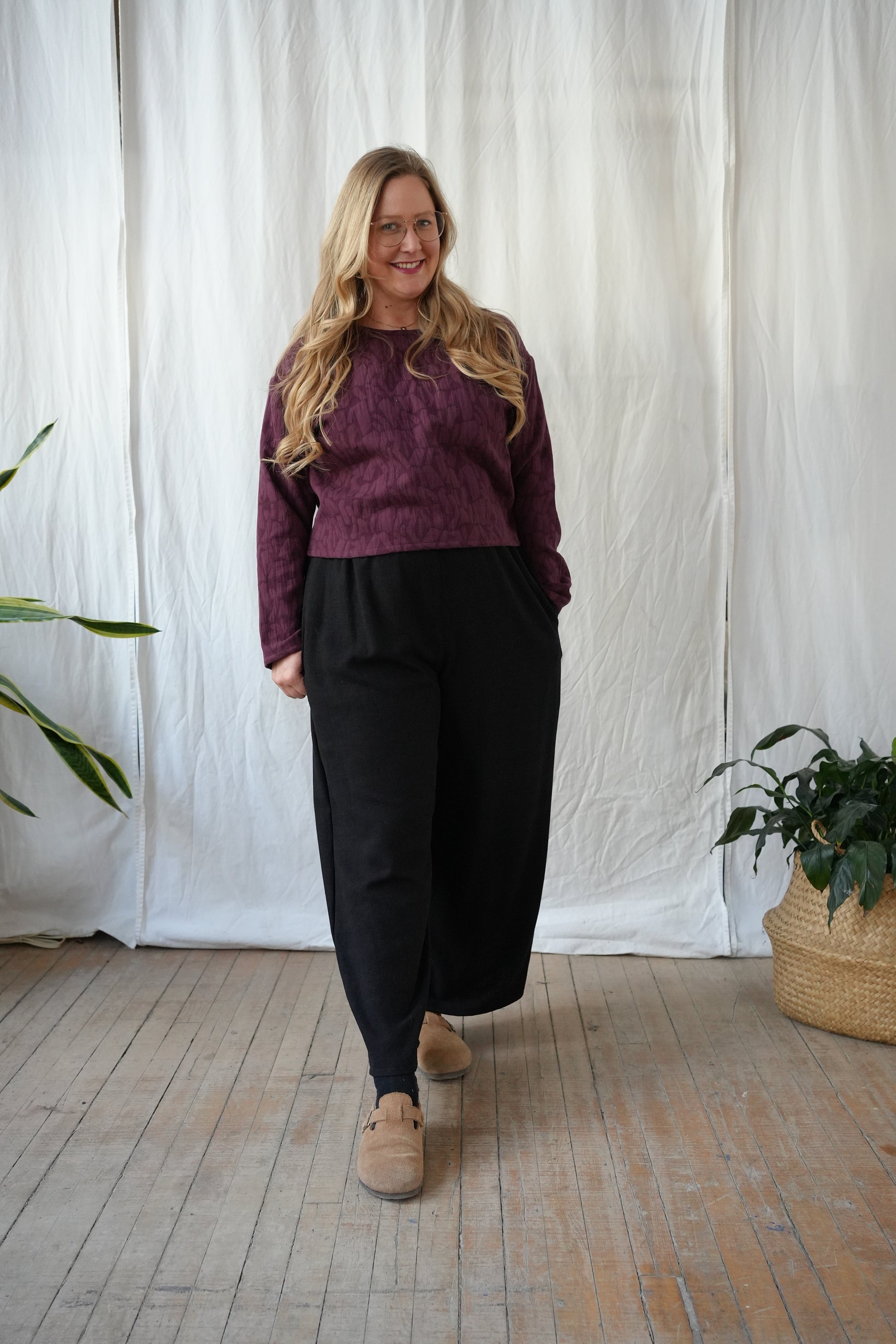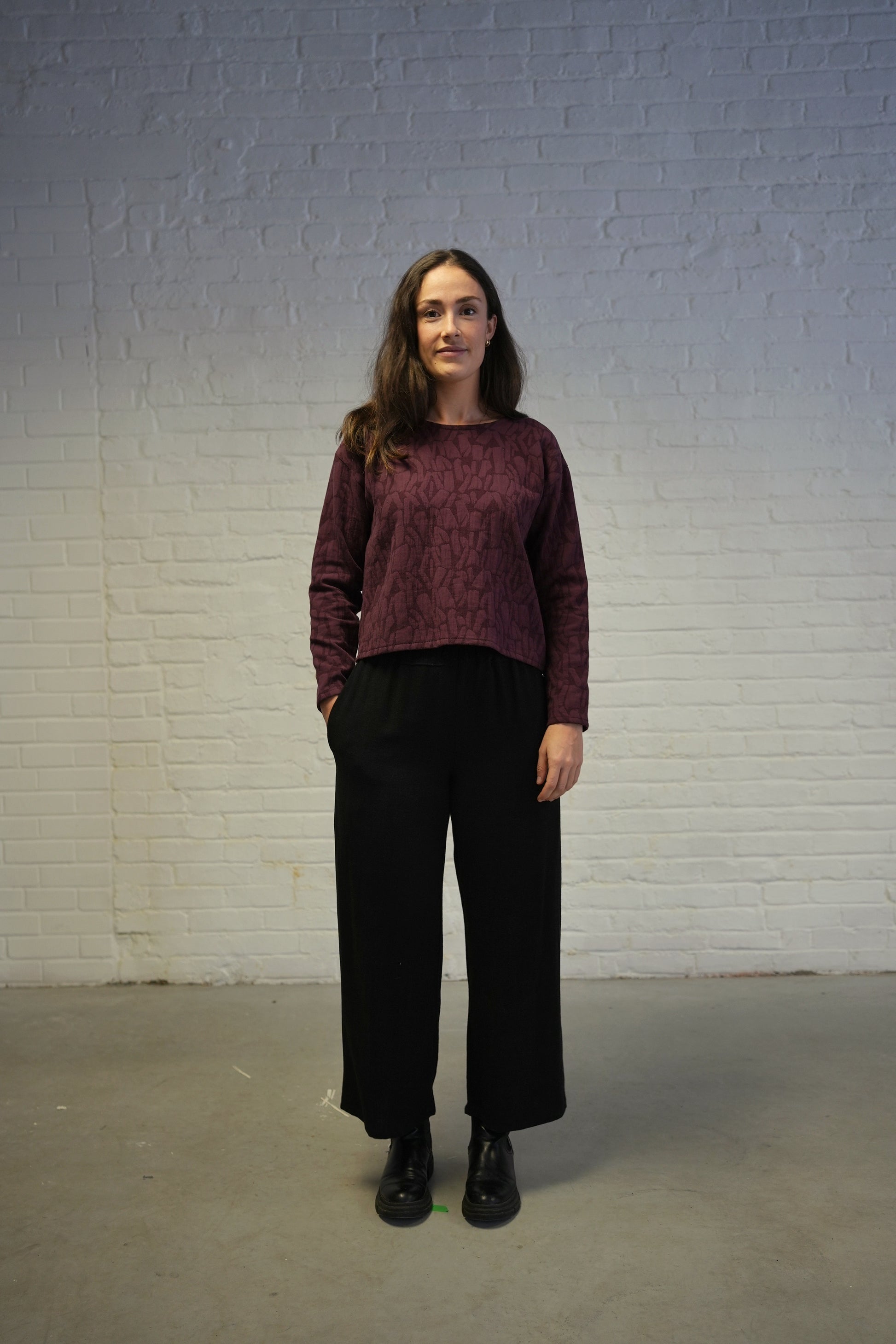 Long sleeve textured top- Plum